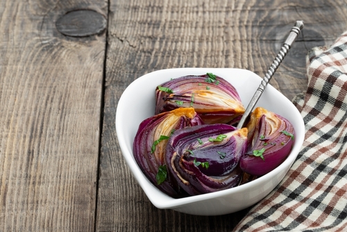 Cibule oloupeme a překrojíme napůl či na čtvrtiny. Vyskládáme je do pekáčku, osolíme, přidáme přepuštěné máslo a pekáček dáme do trouby předehřáté na 180 stupňů Celsia. Pečeme asi 40 minut. Hotové posypeme nasekanou petrželkou a podáváme například k pečenému masu.
