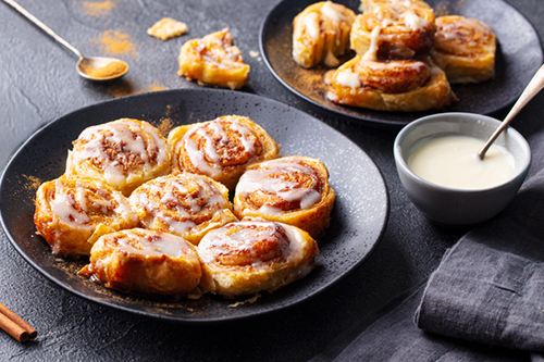 Předehřejeme troubu na 180 °C a máslem si vymažeme 2 plechy. Smícháme mouku, prášek do pečiva, jedlou sodu, moučkový cukr a sůl. Přidáme jogurt, vejce i máslo a vypracujeme těsto. (Těsto bude měkké a mírně lepivé. Pokud je příliš lepivé a nejde válet, přidáme ještě trochu mouky. Při přidávání mouky jsme ale opatrní – těsto musí zůstat vláčné.) Na pomoučené ploše ho pomoučeným válečkem rozválíme na obdélník, potřeme máslem a posypeme skořicí rozmíchanou s cukrem. Srolujeme a nakrájíme ostrým nožem asi na 12 kousků. Vzniklé šneky dáme na připravené plechy a vložíme do trouby, kde pečeme asi 22 minut dozlatova. Přeneseme na mřížku a ještě teplé je přelijeme polevou z jogurtu, cukru, vanilky a citronu. To musíte zkusit!