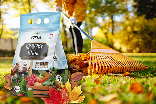 Rovnoměrně rozhoďte granule kravského hnoje – dle návodu.