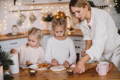 Máme v hlavě tu romantickou představu o roztomilých malých pomocníčcích s čepečkem na hlavě, malou zástěrkou, kuchyni lehce poprášenou moukou a to, jak společně za zvuků koled vykrajujeme perníčky či linecké, zatímco se všude kolem line vůně vanilky a skořice.