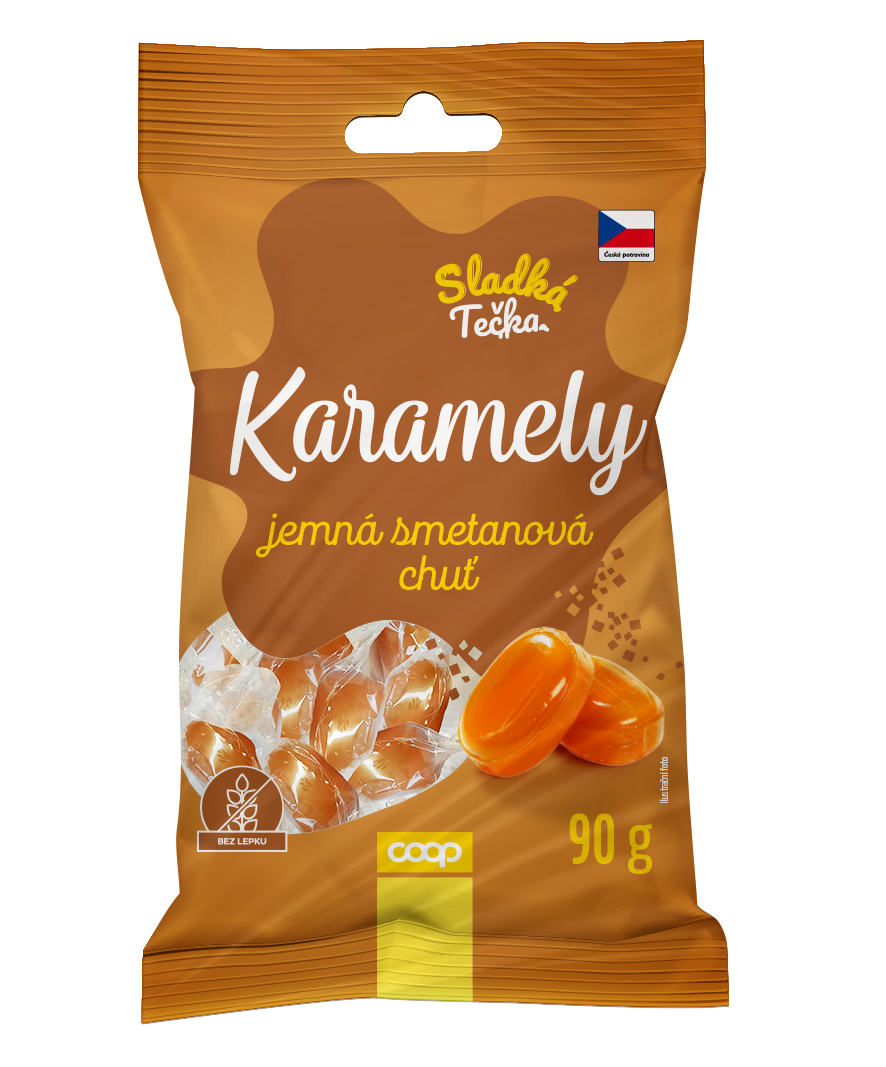 cukr, glukózový sirup, smetana (16%), máslo (0,7%), aromata, jedlá sůl, emulgátor: slunečnicový lecitin.